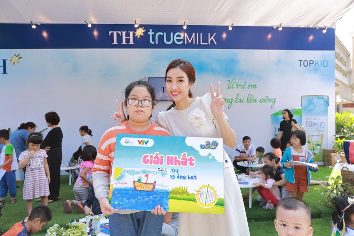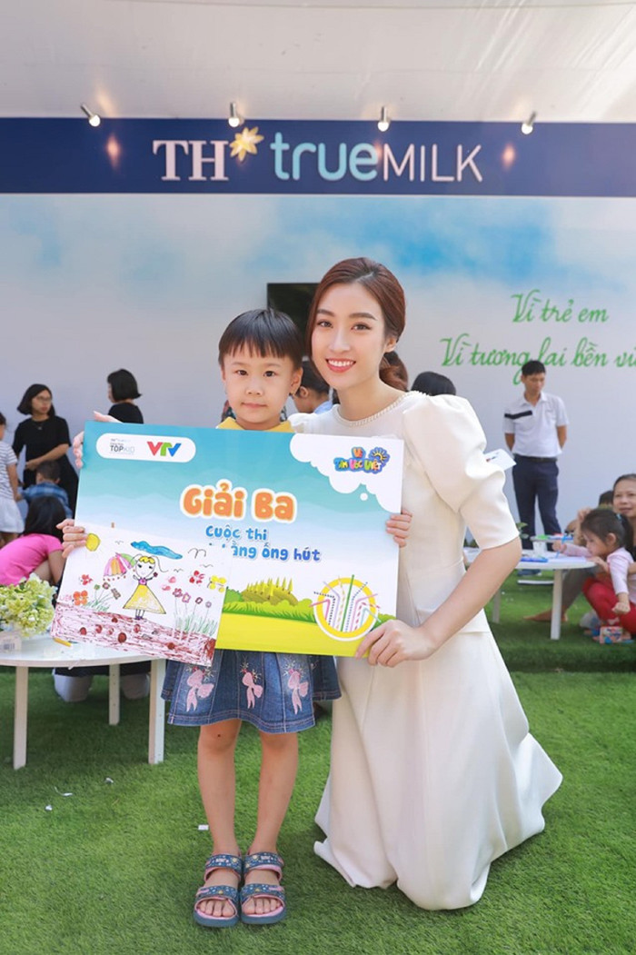 Hoa hậu Đỗ Mỹ Linh không chỉ là đóng vai trò là người cầm cân nảy mực cuộc thi vẽ tranh mà còn như một vị đại sứ môi trường thân thiện, liên tục mỉm cười, giao lưu, chụp ảnh với các em nhỏ.