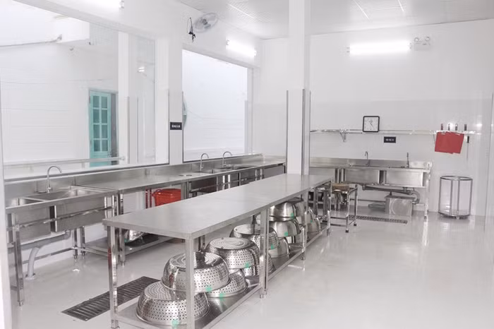 Bếp ăn mẫu bán trú được thiết kế tuân thủ nghiêm ngặt trong việc đảm bảo những quy định về an toàn vệ sinh thực phẩm và nâng cao hiệu suất hoạt động.