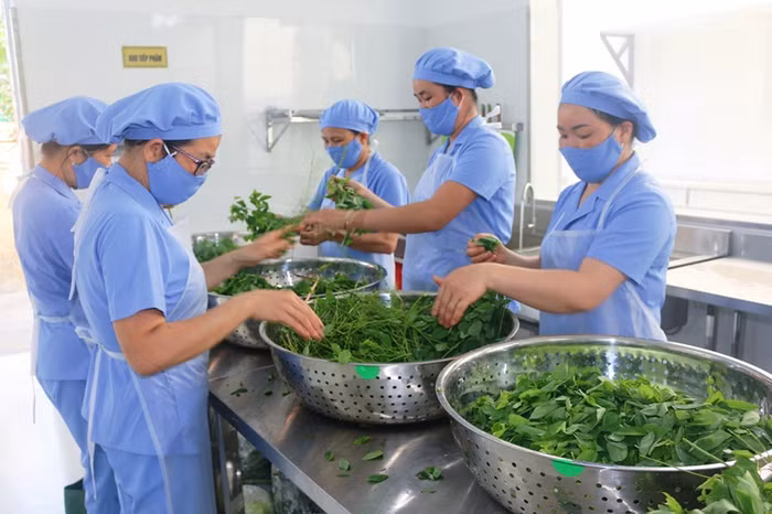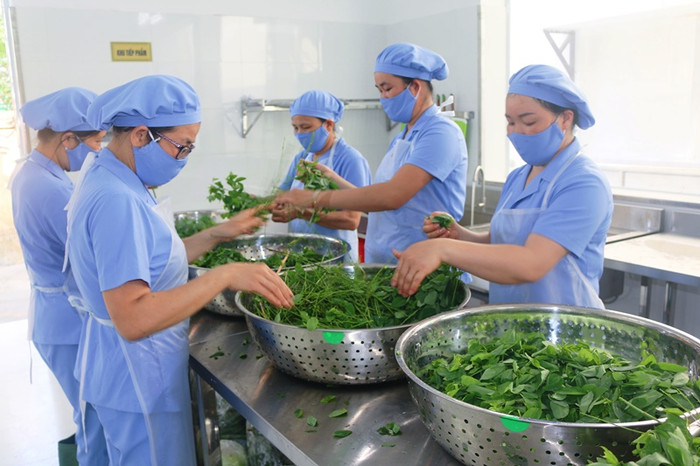 Áp dụng quy tắc một chiều từ khâu tiếp nhận nguyên liệu đến khâu chế biến thành phẩm và vệ sinh sau bữa ăn với hướng dẫn rõ ràng ở mỗi công đoạn.