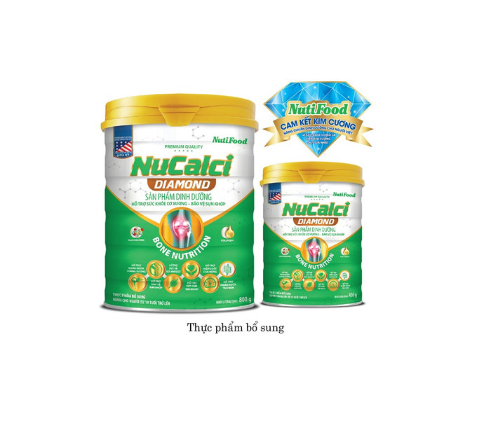 NuCalci Diamond dòng sản phẩm cao cấp với công thức tiên tiến Bone Nutrition là sự kết hợp của bộ ba dưỡng chất vitamin K2, Canxi và Vitamin D3 giúp hệ xương chắc khoẻ từ bên trong, hỗ trợ ngăn ngừa loãng xương cùng với hệ dưỡng chất Glucosamin và Collagen hỗ trợ bảo vệ duy trì sức khoẻ sụn khớp và cải thiện làn da. NuCalci Diamond là giải pháp dinh dưỡng đến từ Chuyên Gia Dinh Dưỡng NutiFood giúp xương chắc khoẻ, phòng ngừa loãng xương hiệu quả, cho bạn sức khoẻ vững chãi để tận hưởng niềm vui cuộc sống NuCalci Diamond được khuyến nghị sử dụng cho đối tượng từ 19 tuổi trở lên và người có nhu cầu canxi cao. |