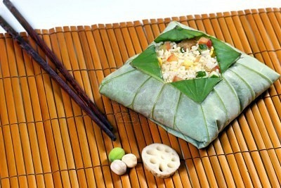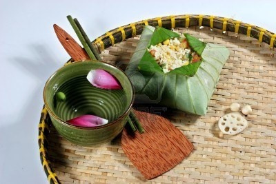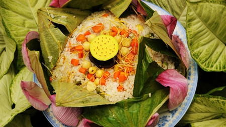 Lấy 250g gà non, bỏ da, chặt thành miếng dài 6cm, rộng 3cm, cho rượu, gia vị vừa đủ, dầu vừng nước ấm, rắc một ít bột mỳ rang đảo đều, làm cho thịt gà khô vừa phải, đổ thịt gà vào tẩm bột cho đều khắp. Lấy vài lá sen, rửa sạch cắt thành từng miếng, ngâm vào nước nóng cho lá mềm ra, sau đó vớt lá sen ra lau khô, đặt úp miếng lá sen lên mâm, mỗi miếng lá gói một miếng thịt gà, gói xong đặt vào trong bánh, rồi xếp vào vỉ hấp, đun to lửa hấp 30 phút, lấy ra, bỏ lá sen đi xếp vào đĩa ăn nóng.