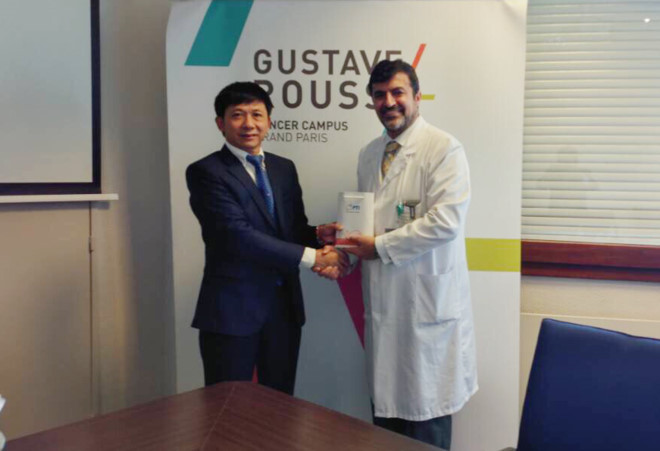 | Trước khi diễn ra lễ ký kết, ông Bùi Xuân Thu, Tổng giám đốc PTI đã đến khảo sát trực tiếp các bệnh viện của Pháp sẽ phục vụ điều trị cho bệnh nhân ung thư khi sử dụng sản phẩm bảo hiểm này. |