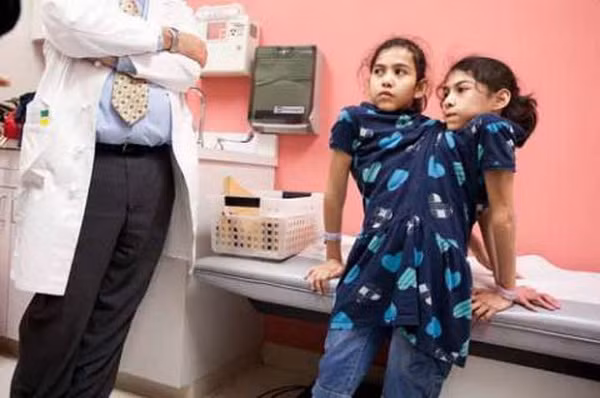 | Cặp song sinh dính liền này có 2 đầu, 4 cánh tay và chỉ... 2 chân. Xem thêm: Những hình ảnh thương tâm về căn bệnh 'lạ' ở Quảng Ngãi / Điểm danh một số người mắc hội chứng kỳ lạ "người sói" |