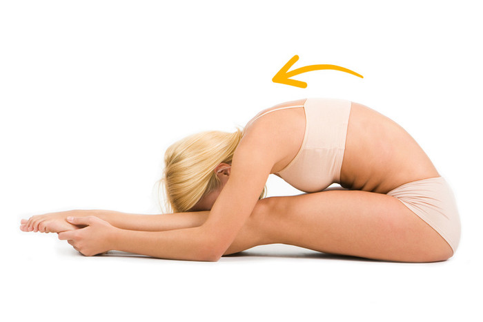 Cúi đầu về phía trước và cố gắng chạm tay vào đầu gối của bạn. Giữ yên tư thế này trong 2-3 phút và hít thở sâu. Làm như vậy sẽ kéo căng cơ lưng.
