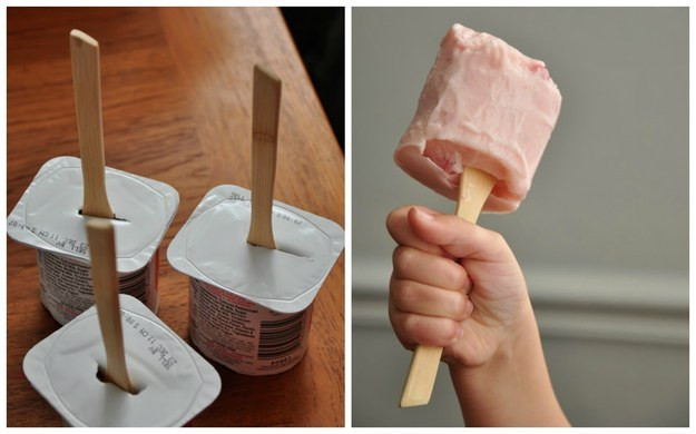 18. Làm sữa chua có thêm que cầm, giúp trẻ cầm đơn giản.