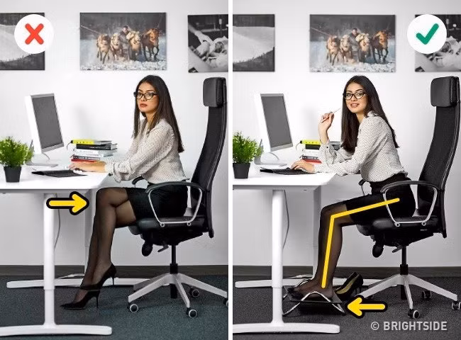 Có thể đặt một dụng cụ để chân như trong hình khi ngồi làm việc cho cơ thể cảm thấy thoải mái.