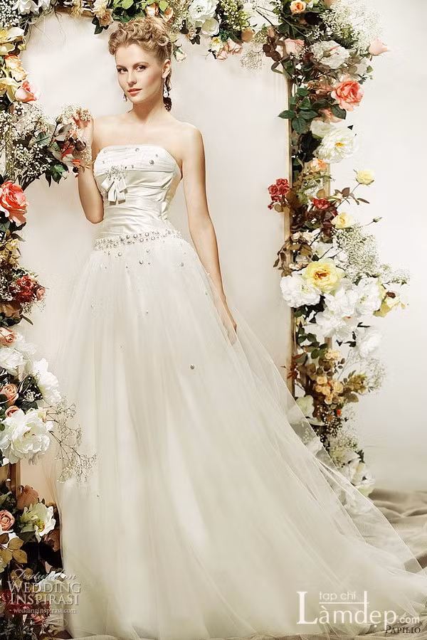 Bất cứ cô dâu mới nào cũng sẽ hài lòng và cảm nhận rõ rệt sự trong sáng, kiêu hãnh trong những lớp váy ngọt ngào của váy cưới Papilio.
