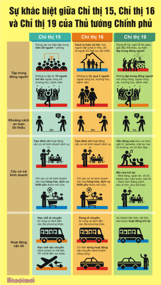 Sự khác biệt giữa Chỉ thị 15, Chỉ thị 16 và Chỉ thị 19 của Thủ tướng Chính phủ