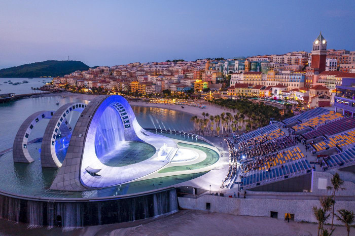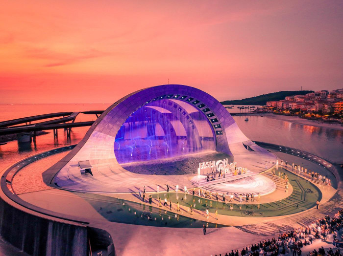 Vị trí, thiết kế, công nghệ đẳng cấp của sân khấu Kiss The Stars – show trình diễn đa phương tiện trên màn nước biển hàng đầu Châu Á, cảm hứng về tình yêu, sự kết nối và tôn vinh nghệ thuật của Thị trấn Hoàng Hôn đã khiến sân khấu Thị trấn Hoàng Hôn chiều 7/4 trở thành sân khấu thời trang độc nhất vô nhị.