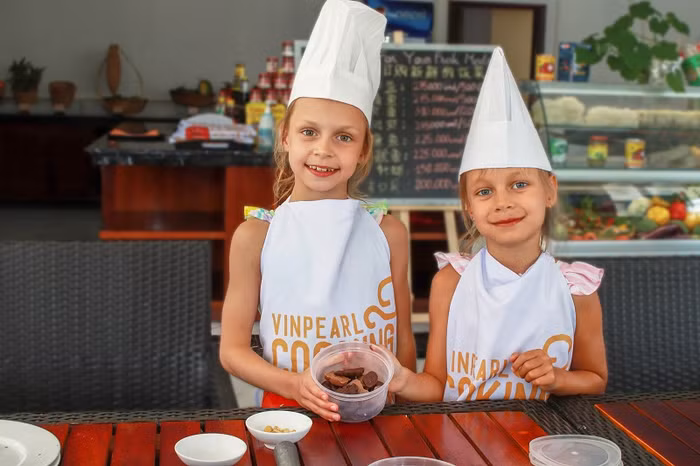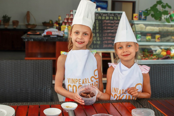 Với các em nhỏ thích nấu ăn, Câu lạc bộ “Bếp trưởng 5 sao nhí” tại các khách sạn, khu nghỉ dưỡng Vinpearl là điểm đến thích hợp nhất.