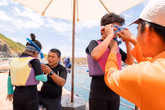 Tại đây, bé sẽ được các chuyên gia hướng dẫn cách hít thở khi ở dưới nước, sử dụng các thiết bị lặn và tự mình khám phá đáy đại dương bao la cùng quần thể sinh thái biển đa dạng chỉ có tại Vinpearl Nha Trang.