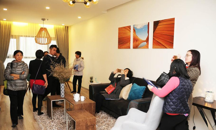| Rất đông khách thăm quan căn hộ mẫu FLC Twin Towers 265 Cầu Giấy. |