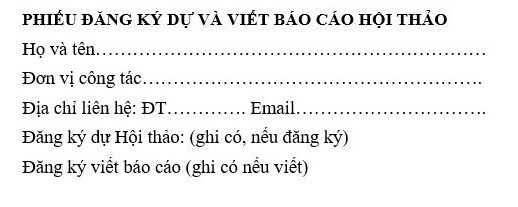 Để Hội thảo đạt kết quả tốt, Ban tổ chức rất mong được sự hưởng ứng của các tổ chức, cá nhân thuộc đối tượng đại biểu dự hội thảo đăng ký theo mẫu sau: