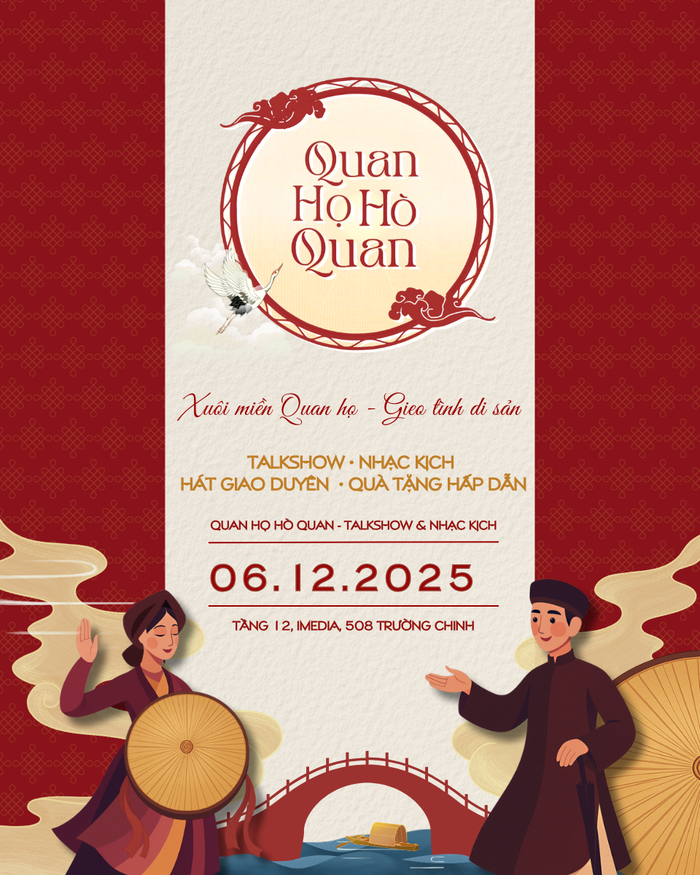 Tiêu biểu là sự kiện nghệ thuật “Quan Họ Hò Quan” do nhóm sinh viên Eight-teen thuộc Trường Đại học Khoa học Xã hội và Nhân văn – Đại học Quốc gia Hà Nội ấp ủ. Sự kiện sẽ tổ chức vào tối 06/12/2025 tại Tòa iMedia Tower (đường Trường Chinh, phường Kim Liên, Hà Nội), với kỳ vọng đưa Quan họ trở lại đầy sống động giữa đời sống hiện đại và khẳng định rằng người trẻ không chỉ quan tâm đến di sản mà còn đủ năng lượng, tri thức và đam mê để dẫn dắt văn hóa.