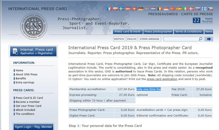 Theo đó, GNS có thể cấp cho bất cứ ai có nhu cầu. Để có thẻ “Nhà báo quốc tế” sẽ phải bỏ ra chi phí một lần duy nhất 127 Euro (tương đương 3,3 triệu đồng) và phí duy trì hàng năm 36 Euro (tương đương 936.000 đồng).