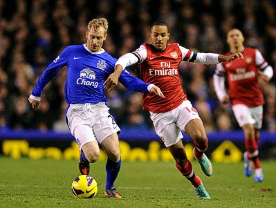 Đội khách đã áp đảo thế trận ngay từ đầu, và lẽ ra họ đã dẫn trước ở phút thứ 6 khi Seamus Coleman chọc thủng hàng thủ Arsenal với quả chọc khe cho Steven Pienaar, người có một cú đá vọt xà ngang trước Wojciech Szczesny.