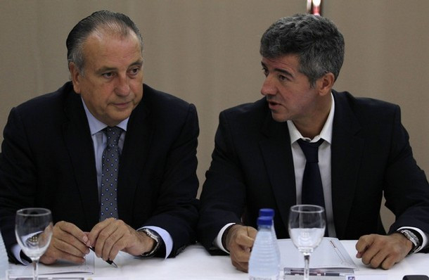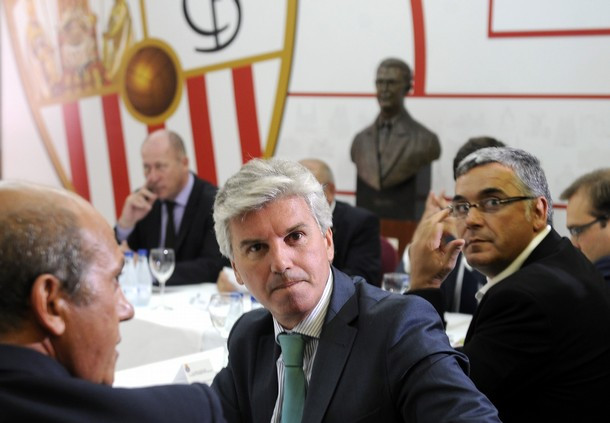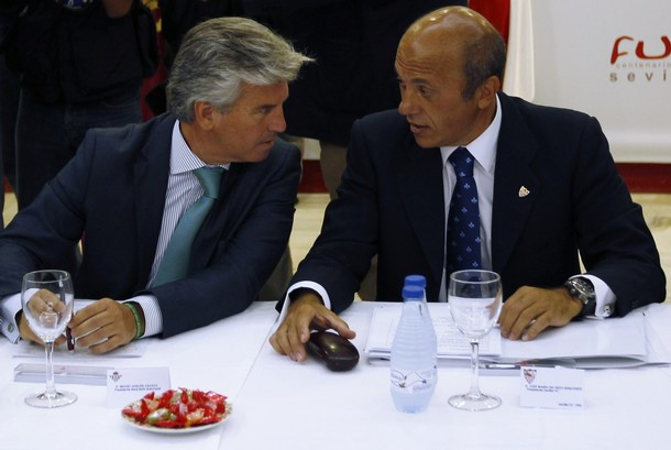 | Chủ tịch Sevilla, ông Jose Maria del Nido (giữa) là người khởi xướng chống lại sự thống trị của Barca và Real ở La Liga. |