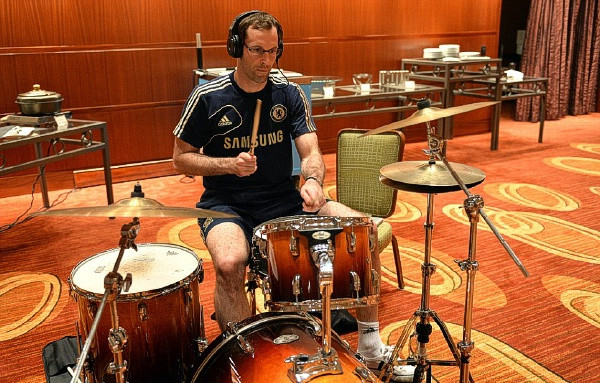 Petr Cech cũng tranh thủ dịp này để được thử tài chơi trống của mình. Anh tận dụng bộ trống ở khách sạn nơi Chelsea đang ở để biểu diễn.