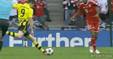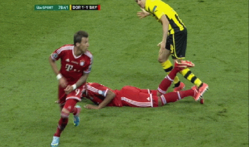 - Dante đốn ngã Marco Reus trong vòng cấm Bayern.