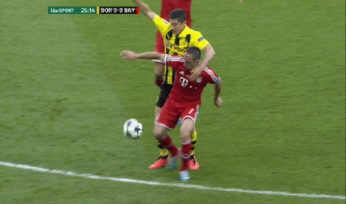 - Ribery đánh cùi chỏ vào mặt Lewandowski.