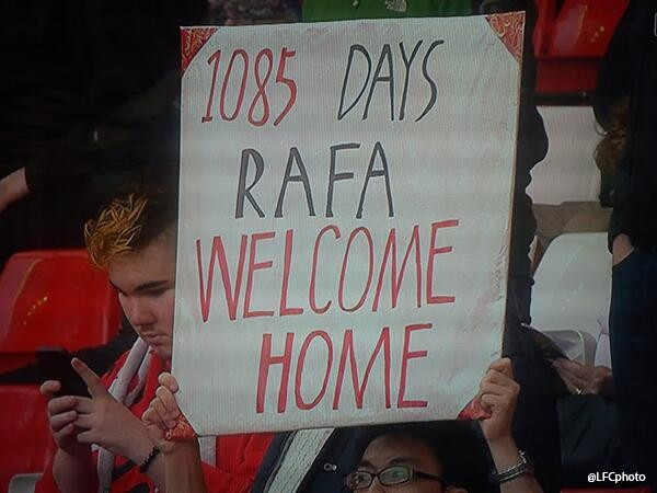 - Biểu ngữ chào đón Benitez ngày trở lại mái nhà xưa Anfield.