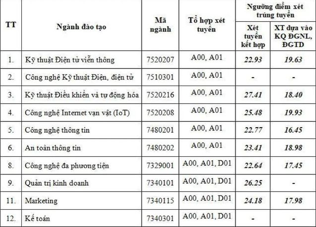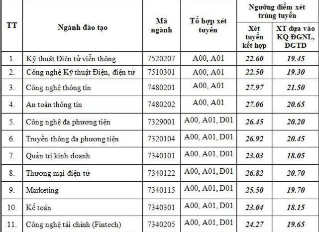 Mới đây, Học viện Công nghệ Bưu chính Viễn thông cũng thông báo kết quả xét tuyển theo phương thức xét tuyển kết hợp và phương thức xét tuyển dựa vào kết quả các bài thi đánh giá năng lực, đánh giá tư duy năm 2022.