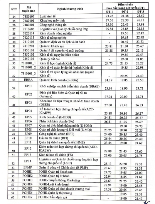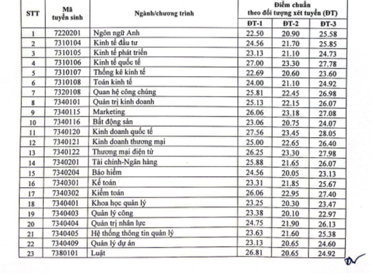 Ngày 20/7, Trường Đại học Kinh tế Quốc dân công bố điểm trúng tuyển đối với các phương thức xét tuyển sớm gồm xét tuyển thẳng, ưu tiên xét tuyển, xét tuyển kết hợp đối với các đối tượng thí sinh không dùng kết quả thi tốt nghiệp trung học phổ thông.