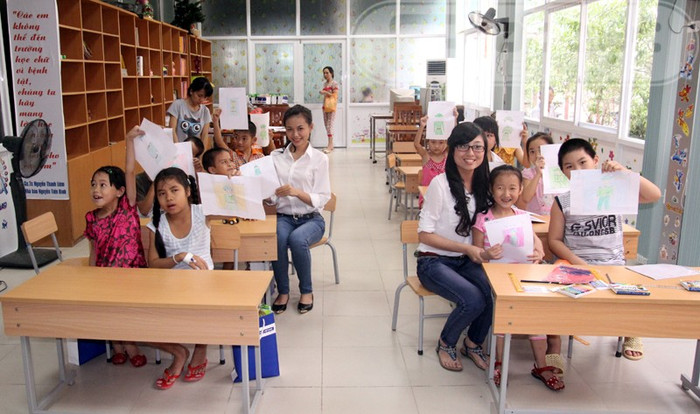| Nữ sinh trong mơ đầu tiên của Việt Nam Hồ Thị Phương Thảo và Phan Lê Vũ Nguyên Tâm đến thăm Lớp học Hy vọng do Báo Giáo dục Việt Nam phối hợp Bệnh viện Nhi trung ương tổ chức |