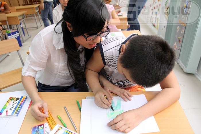 | Nguyên Tâm cũng rất có năng khiếu vẽ để hướng dẫn các em nhỏ |