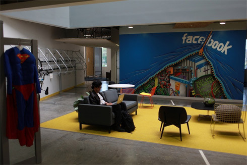 | Danh sách các văn phòng tuyệt nhất để làm việc trong năm 2012 của hãng nghiên cứu Glassdoor xếp Facebook đứng đầu với số điểm 4,4/5 trong khi Google đạt 4,1/5. Ảnh: Sảnh chính. |