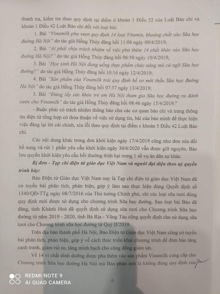 - Gửi văn bản thông báo đã hoàn thành việc cải chính và xin lỗi công khai nói trên cho Vinamilk theo K1 Điều 42 Luật Báo chí;