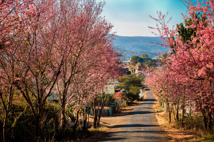 Đặc biệt, cũng trong những ngày cuối đông, đến với Đà Lạt, bạn còn được chiêm ngưỡng những cung đường rợp bóng mai anh đào bung nở.