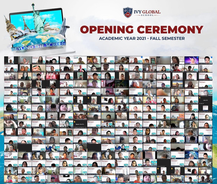 Các thầy cô, Ban Giám hiệu và học sinh đến từ Mỹ, Anh, Malaysia, Việt Nam đã có một lễ khai giảng gần gũi dù mỗi thành viên đều ở một địa điểm khác nhau do khoảng cách địa lý hoặc yêu cầu giãn cách.