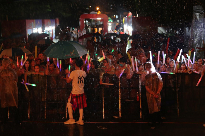 Trước giờ G đêm nhạc, trời bất ngờ đổ mưa tầm tã kéo dài. Tuynhiên, hàng ngàn khán giả vẫn kiên trì đội mưa với nụ cười tươi tắn, háo hức chờ buổi diễn bắt đầu.