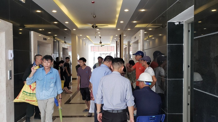 Không chỉ cư dân nhận nhà, sảnh chung cư cũng tấp nập các đội thi công lắp đặt nội thất.