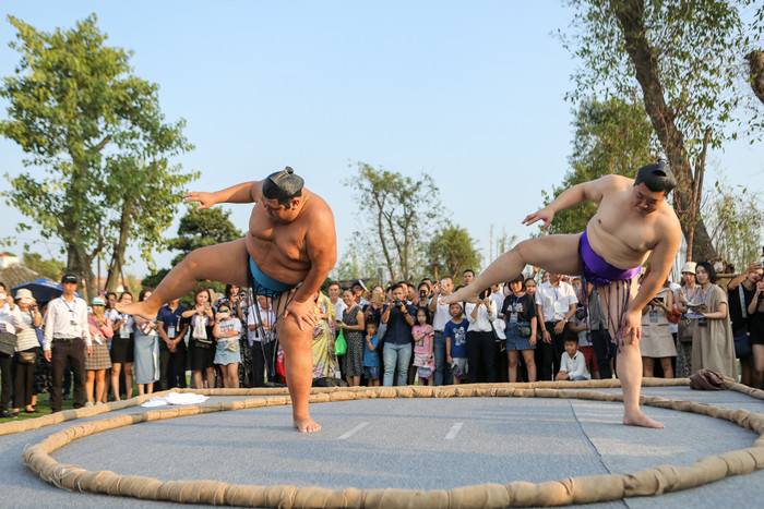 Đặc biệt là sự xuất hiện của 2 đại võ sĩ Sumo lừng danh là Tashiro Yoshitoku (trái) và Aoki Yoshifumi – những võ sĩ được coi là biểu tượng sống của môn thể thao có truyền thống 1500 năm tại đất nước Mặt trời mọc.