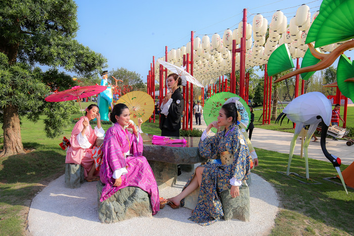 Những cosplayer xinh đẹp như bước ra từ manga tranh thủ lưu dấu ấn như những người đầu tiên khám phá khu vườn Nhật quy mô đẳng cấp hàng đầu khu vực.