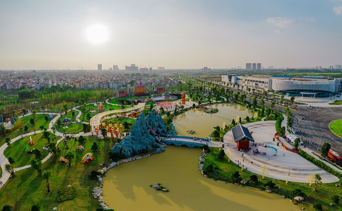 Các cảnh quan tuyệt đẹp từ khu quảng trường thảm cỏ lớn, hồ cá chép đỏ, nhà hàng Nhật, vườn thiền, rừng tre... hoà hợp thành không gian kiến trúc, văn hoá đậm chất Nhật giữa lòng Hà Nội .