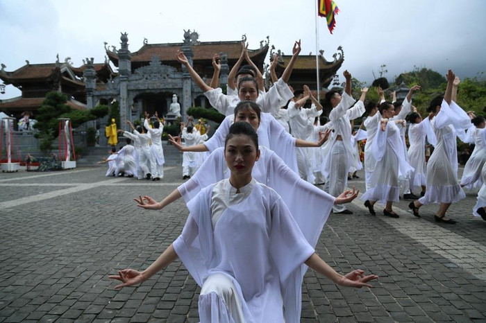 Giữa không gian liêu trai, hoang hoải, tiếng chuông trầm đục, tiếng gõ mõ đều đặn và lời kệ huyền bí làm nền cho màn “tâm linh hội tụ” càng khiến tất cả cảm xúc lắng đọng lại. Có cảm giác, mỗi vũ công đều như hướng tâm về đất Phật.