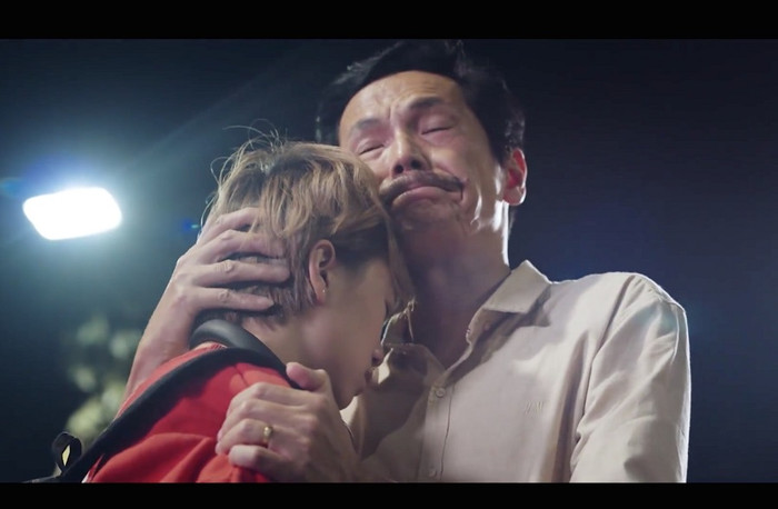 Trong đoạn video có tên gọi “Về nhà ăn cơm”, cảm xúc của người xem được đẩy hết từ cung bậc này đến cung bậc khác. Bên cạnh những câu nói hóm hỉnh của nhân vật Quốc là những phân cảnh lấy nước mắt của người xem của bố Sơn và Ánh Dương.