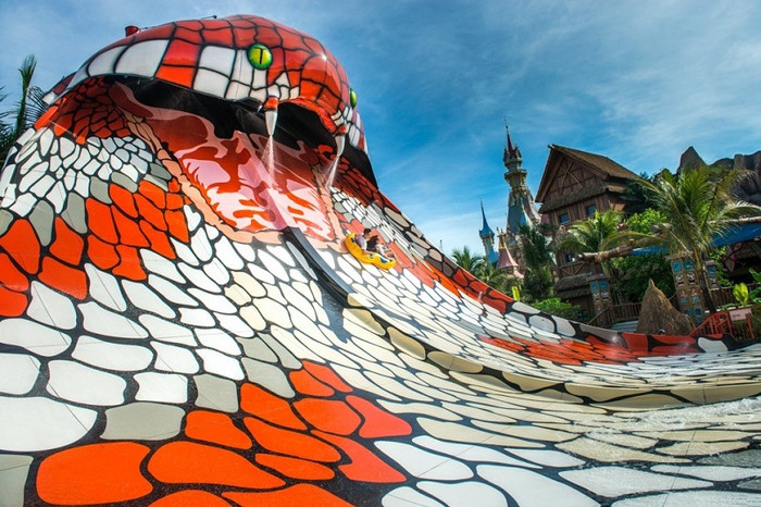 Trải nghiệm trượt ống thử thách giữa vòng xoáy với độ dài lên đến vài chục mét khiến hai cô gái có phần “hết hồn”, nhưng cảm giác sảng khoái tột độ sau đó quả thực vô cùng đáng giá.