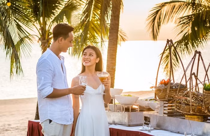 Trong không gian mở thoáng đãng mang đầy hương vị thiên nhiên, tiếng sóng vỗ rì rào, hội bạn đã có những khoảnh khắc thưởng thức ẩm thực thượng hạng ngon lành, tràn ngập tiếng cười.