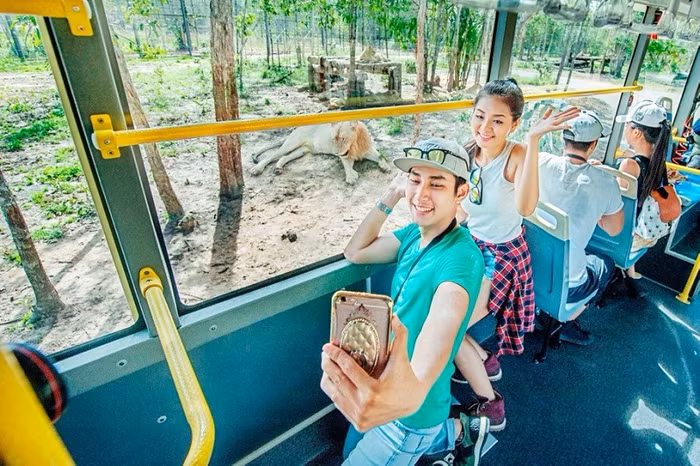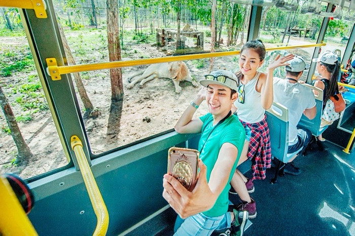 Ngày tiếp theo, Tân Một Cú và Duy Thẩm nắm tay bạn gái bước vào chuyến phiêu lưu tại Vinpearl Safari – công viên bảo tồn và chăm sóc động vật bán hoang dã đầu tiên và lớn nhất Đông Nam Á.