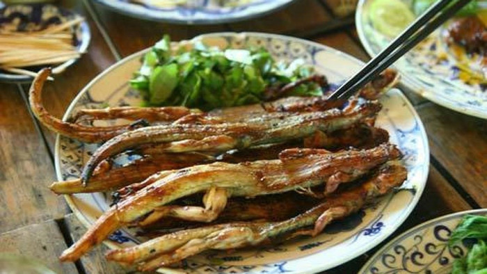 Còn lỡ “nhát” hơn, hãy thưởng thức thằn lằn theo cách khác bằng cách băm nhỏ xào với tiêu xanh ăn kèm bánh tráng và lá lốt.