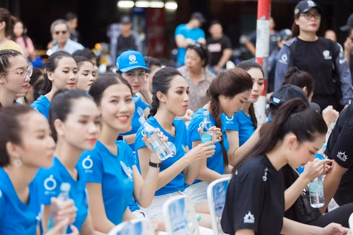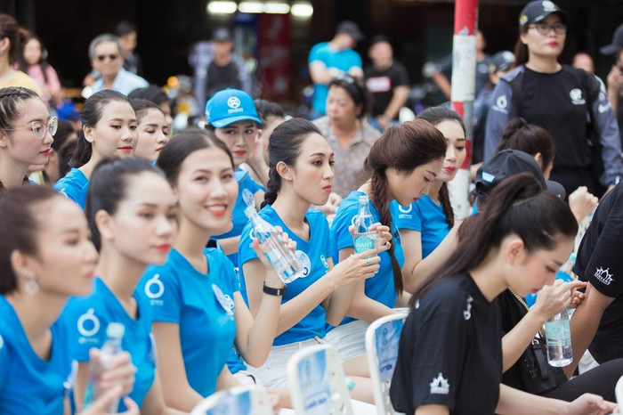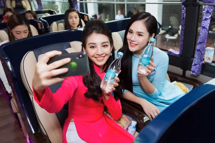 | Các thí sinh Miss World Việt Nam mang theo nước khoáng Vivant cho các hoạt động ngoài trời. |