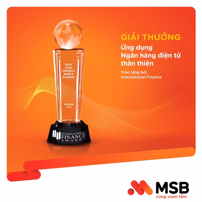 Đây cũng là lý do để MSB được tạp chí IMF ghi nhận và vinh danh giải thưởng Best User Friendly Mobile Banking 2019 (Ứng dụng Ngân hàng điện tử thân thiện 2019) và giải thưởng cũng là nguồn động lực lớn cho MSB tiếp tục phát triển, cùng khách hàng và đối tác vươn tầm.