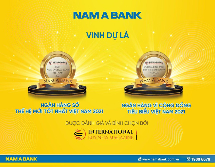 Với những nỗ lực tiên phong trong chuyển đổi số và triển khai các hoạt động an sinh xã hội hướng đến chiều sâu, Nam A Bank vừa được vinh danh là Ngân hàng số thế hệ mới tốt nhất Việt Nam 2021 (Best New Digital Bank Vietnam 2021) và Ngân hàng vì cộng đồng tiêu biểu Việt Nam 2021 (Outstanding Bank For The Community Vietnam 2021) tại chương trình IBM Awards do Tạp chí International Business tổ chức.