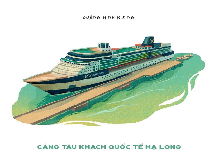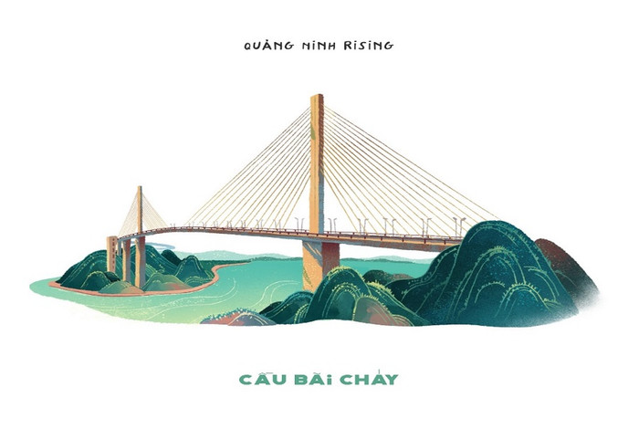 Ngoài những hình vẽ trên, bộ tranh vẽ các công trình tiêu biểu của Quảng Ninh còn có Bảo tàng Quảng Ninh, cầu Koi, vòng quay Sun Wheel…
