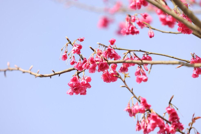 Không như anh đào Nhật Bản hay đào rừng Sa Pa, anh đào Himalaya mang một nét đẹp độc đáo với nhưng bông hoa thanh tao mang hình dáng những chiếc chuông nhỏ, nở thành từng chùm dày với sắc hồng đậm hút mắt người nhìn.