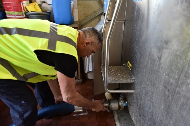 Theo quy chuẩn trên, trước khi đánh xe đi thu gom sữa tại các trang trại, mỗi bồn chứa, vòi dẫn cũng như dụng cụ lấy và trữ sữa mẫu luôn được các tài xế vệ sinh cẩn thận bằng dung dịch clo, chiếu tia UV để tiệt trùng.